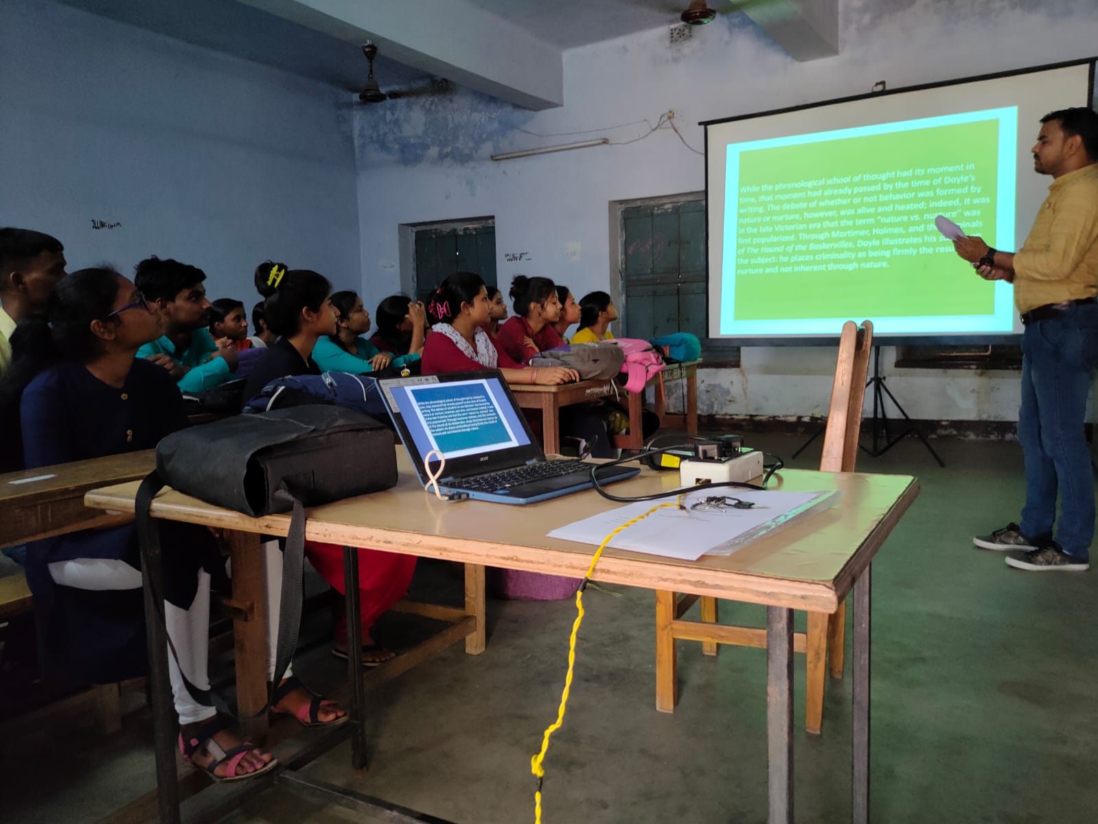 Nestled amidst the natural serenity of the college's surroundings, the department offers a tranquil yet intellectually stimulating environment. It stands as a testament of accessibility, extending quality education to local students who might otherwise have struggled to reach distant colleges. Under the expert guidance of profoundly knowledgeable teachers the English Department has witnessed a remarkable transformation. It has become a symbol of hope for those seeking knowledge and a bright future. As it continues to evolve and grow, it will undoubtedly remain a steadfast source of opportunities, nurturing the aspirations of students and paving the way for a glorious future for all who pass through its doors.